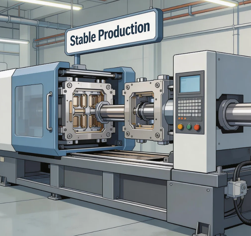 Os moldes com múltiplas cavidades dependem do alinhamento sempre que o molde é fechado. Se o sistema de guia se desgastar de maneira desigual ou se a corrente de ajuste for inconsistente, o resultado não será apenas desgaste, mas também vedação instável, incompatibilidade e variação crescente entre cavidades.