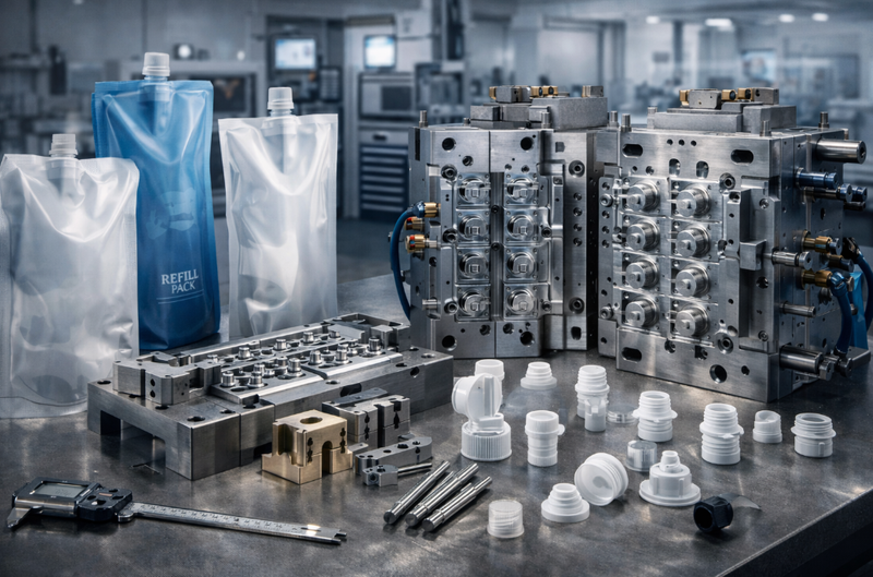 Um molde padrão para tampa de garrafa e um molde para fechamento de bolsa com bico podem parecer semelhantes à primeira vista, mas os pontos de risco são diferentes. A tampa do bico deve funcionar em conjunto com o encaixe, a bolsa e o processo final de enchimento ou tamponamento. Isso significa que o limite não pode ser avaliado sozinho.