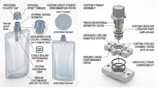 Para as equipes de ferramentaria, o encaixe não é apenas mais uma peça moldada. É uma interface funcional que influencia todo o fechamento da bolsa com bico. É por isso que esse estágio geralmente se sobrepõe a decisões mais amplas de moldagem por injeção de plástico e ao projeto de componentes de molde de ajuste crítico..