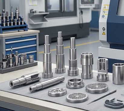 Para componentes de molde, geralmente faz parte de uma rota maior que pode incluir torneamento CNC, fresamento, EDM, retificação, tratamento térmico e inspeção.